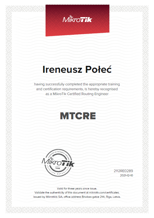 Certyfikat MTCRE