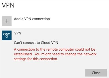 Błąd VPN „Nie można nawiązać połączenia ze zdalnym komputerem” w systemie Windows 10